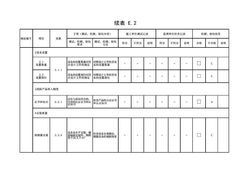 表格名称:表E.2 家用火灾安全系统调试、检测、验收记录(续表18)