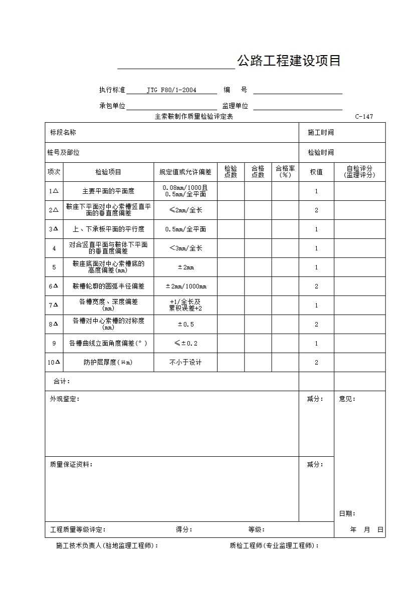 表格名称:C-147表 主索鞍制作质量检验评定表