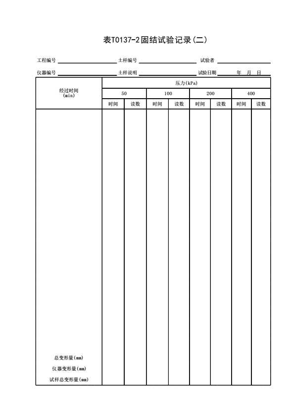 表格名称:表T0137-2 固结试验记录(二)