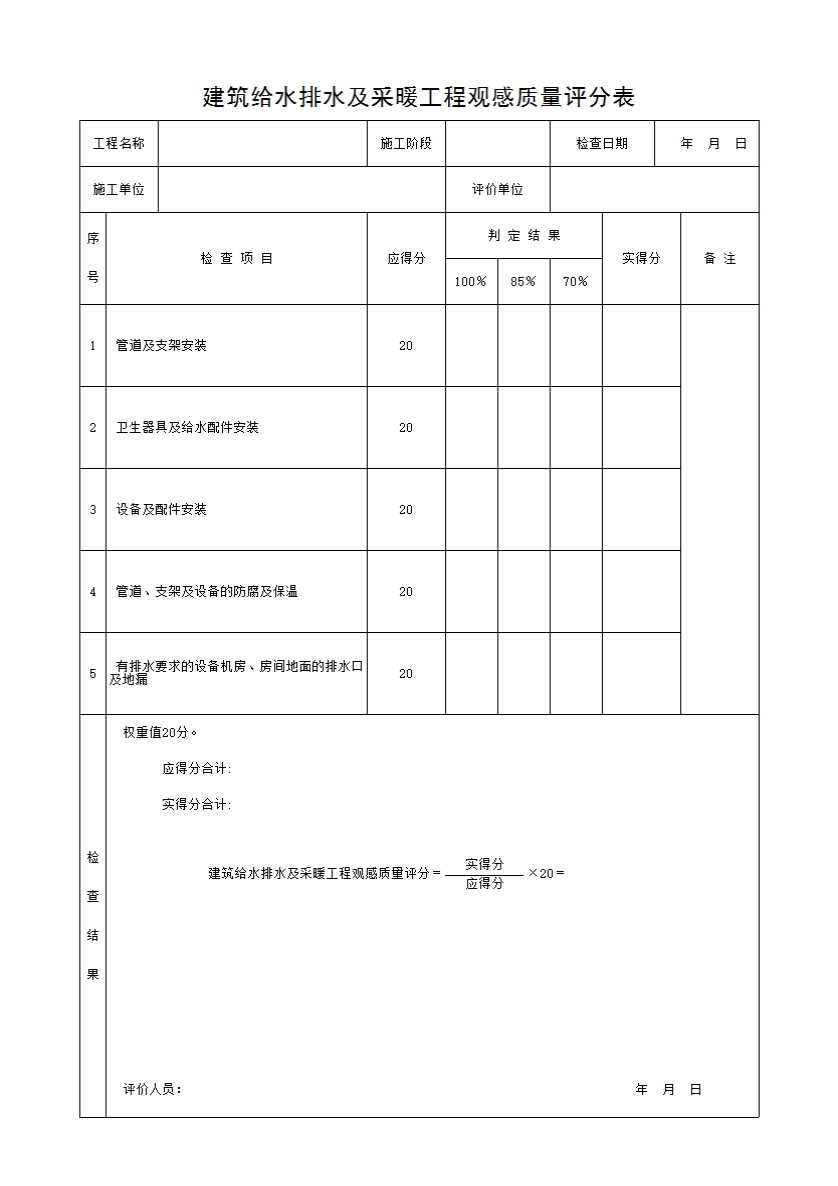 表格名称:建筑给水排水及采暖工程观感质量评分表
