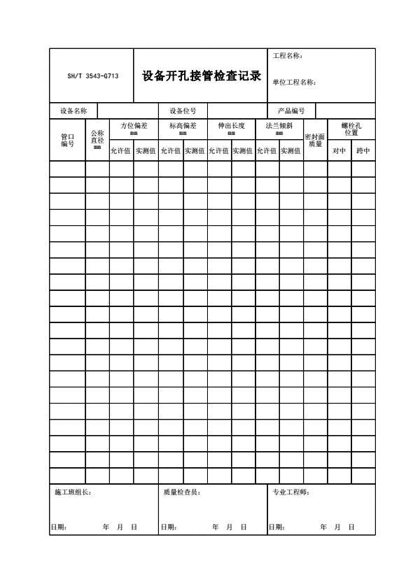 表格名称:SH/T 3543-G713 设备开孔接管检查记录