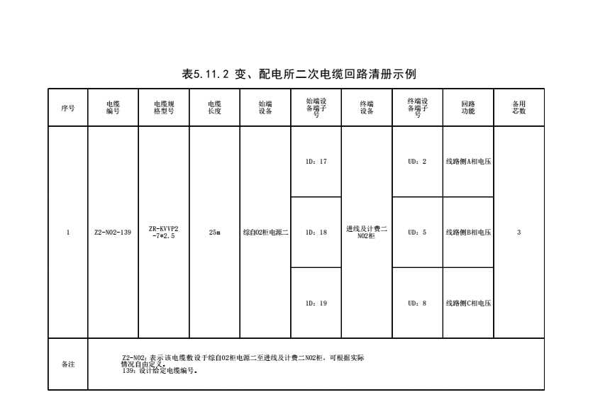 表格名称:表5.11.2 变、配电所二次电缆回路清册示例