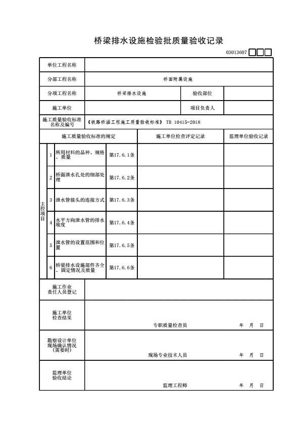 表格名称:03013607 桥梁排水设施检验批质量验收记录