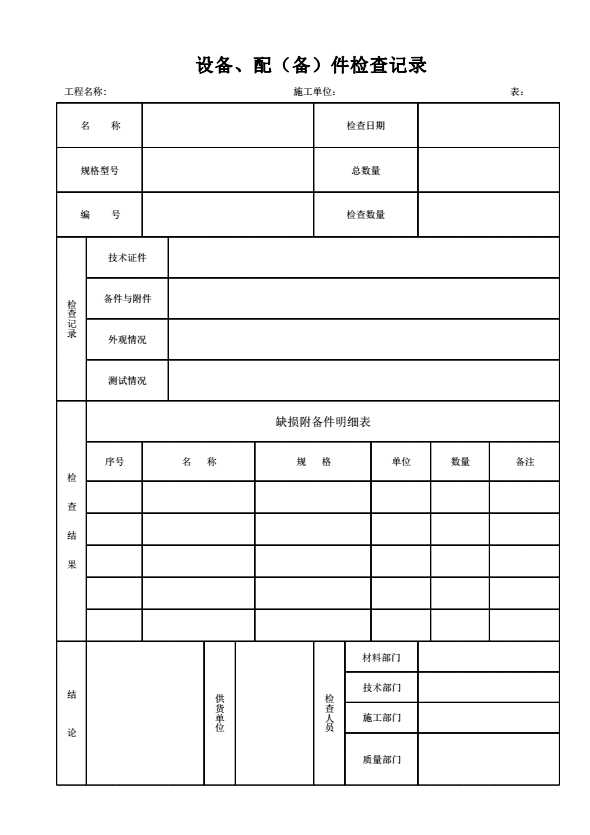 表格名称:11设备、配(备)件检查记录