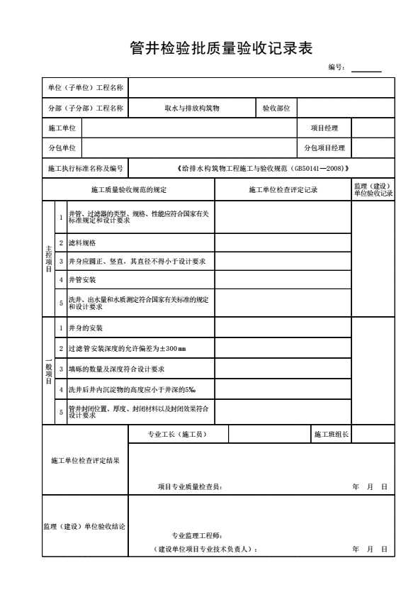 5.7.5.1 井管、过滤器的类型、规格、性能应符合国家有关标准规定和设计要求;