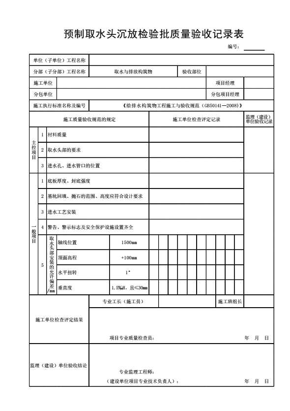 5.7.7.8 取水头部安装的允许偏差应符合表5.7.7的规定。