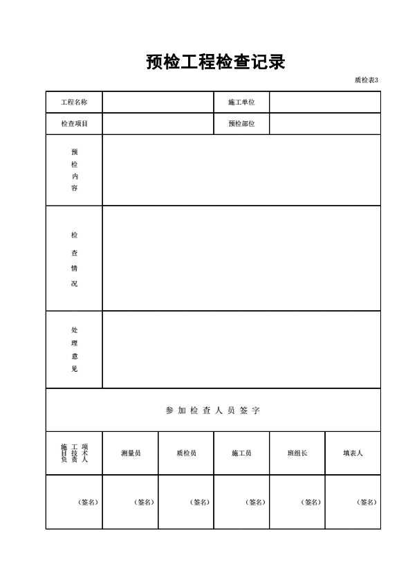 质检表3 预检工程检查记录