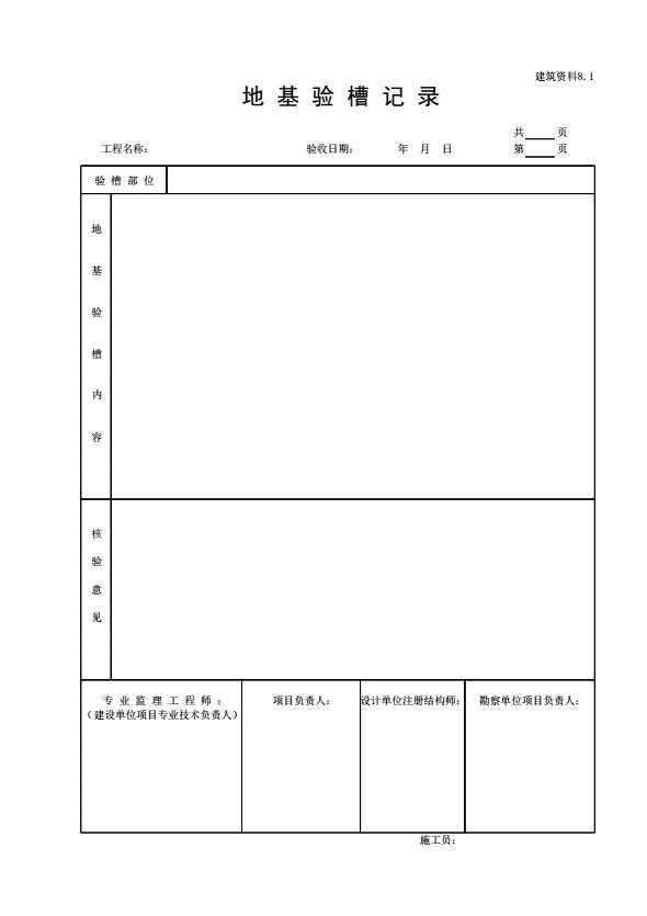 表格名称:建筑资料 地基验槽记录