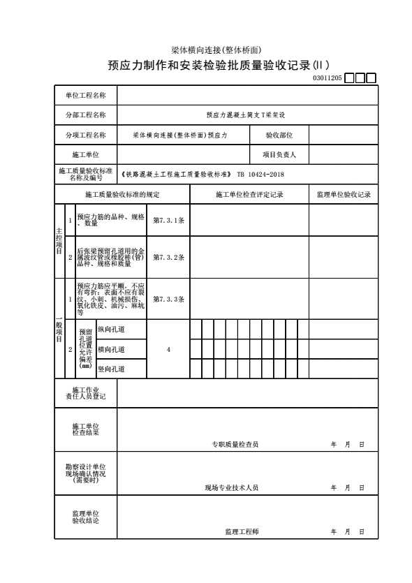 表格名称:03011205 预应力制作和安装检验批质量验收记录(Ⅱ)