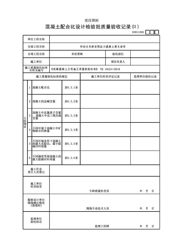 表格名称:03011801 混凝土配合比设计检验批质量验收记录(Ⅱ)