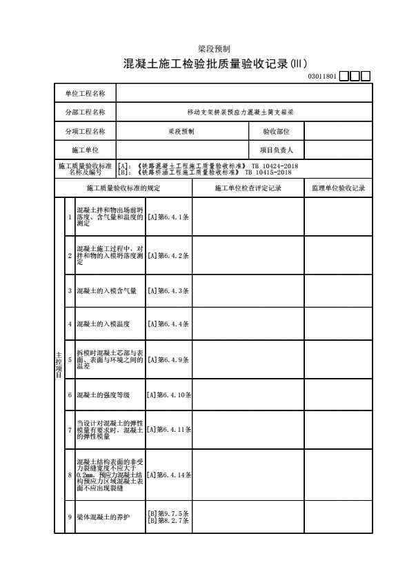 表格名称:03011801 混凝土施工检验批质量验收记录(Ⅲ)