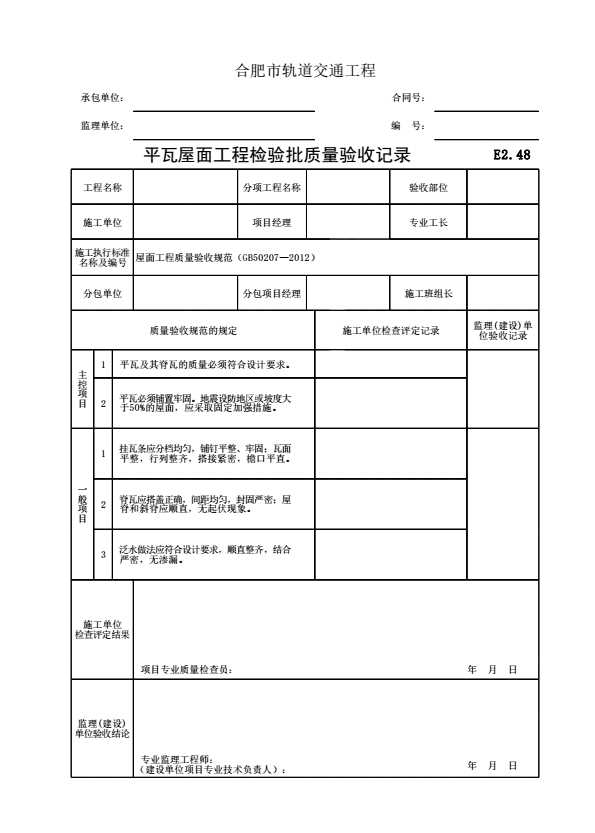 表格名称:E2.48 平瓦屋面工程检验批质量验收记录