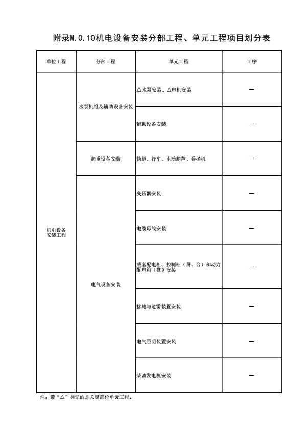 表格名称:附录M 水利工程单位工程、分部工程及单元工程项目划分表