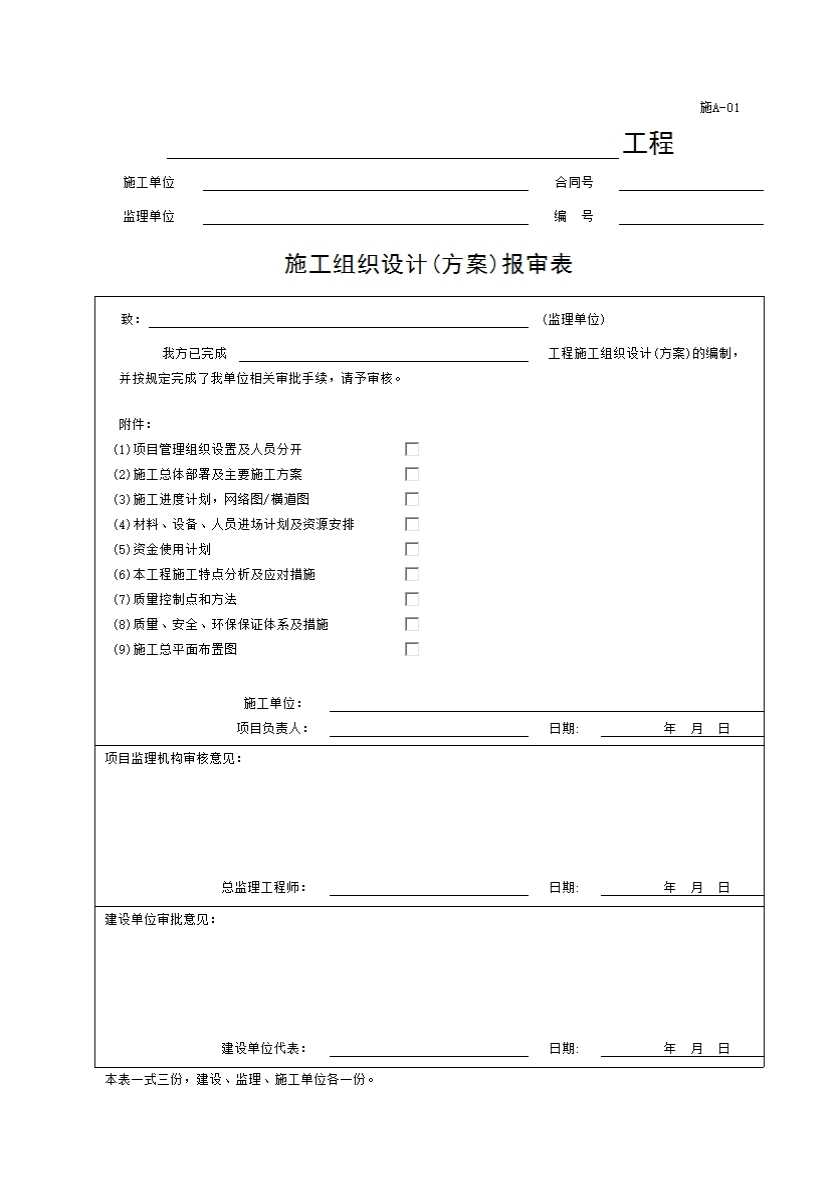 表格名称:1、(施A-01)施工组织设计(方案)报审表