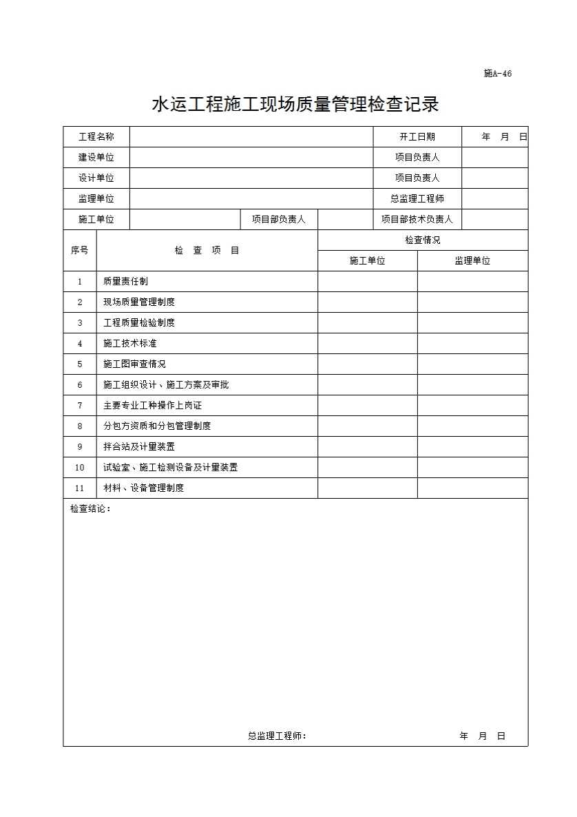 46、(施A-46)水运工程施工现场质量管理检查记录