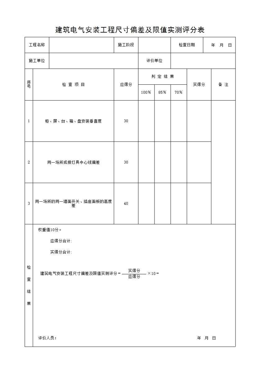 建筑电气安装工程尺寸偏差及限值实测评分表