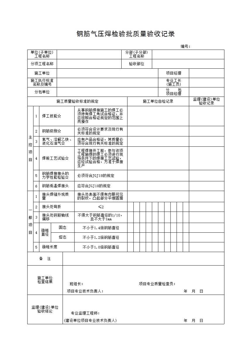 表格名称:C.4 钢筋气压焊检验批质量验收记录