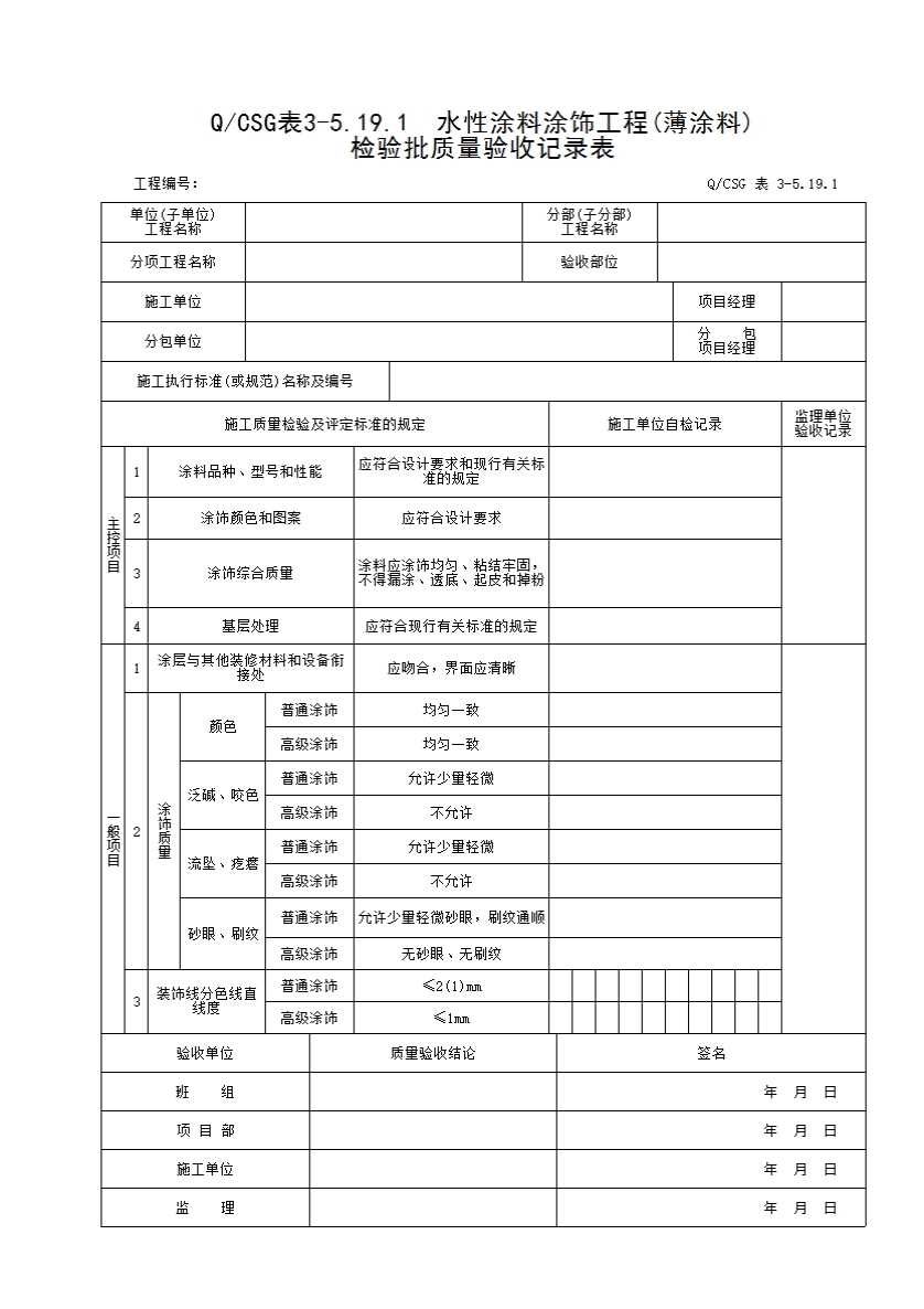 表格名称:QCSG 表 3-5.19.1 水性涂料涂饰工程(薄涂料)检验批质量验收记录表