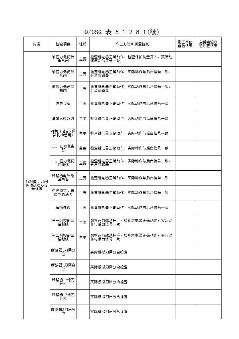 表格名称:QCSG 表 5-1.2.8.1 500kV_____主变间隔 高压侧边断路器、操作箱、刀闸及二次回路分项工程质量验收记录表