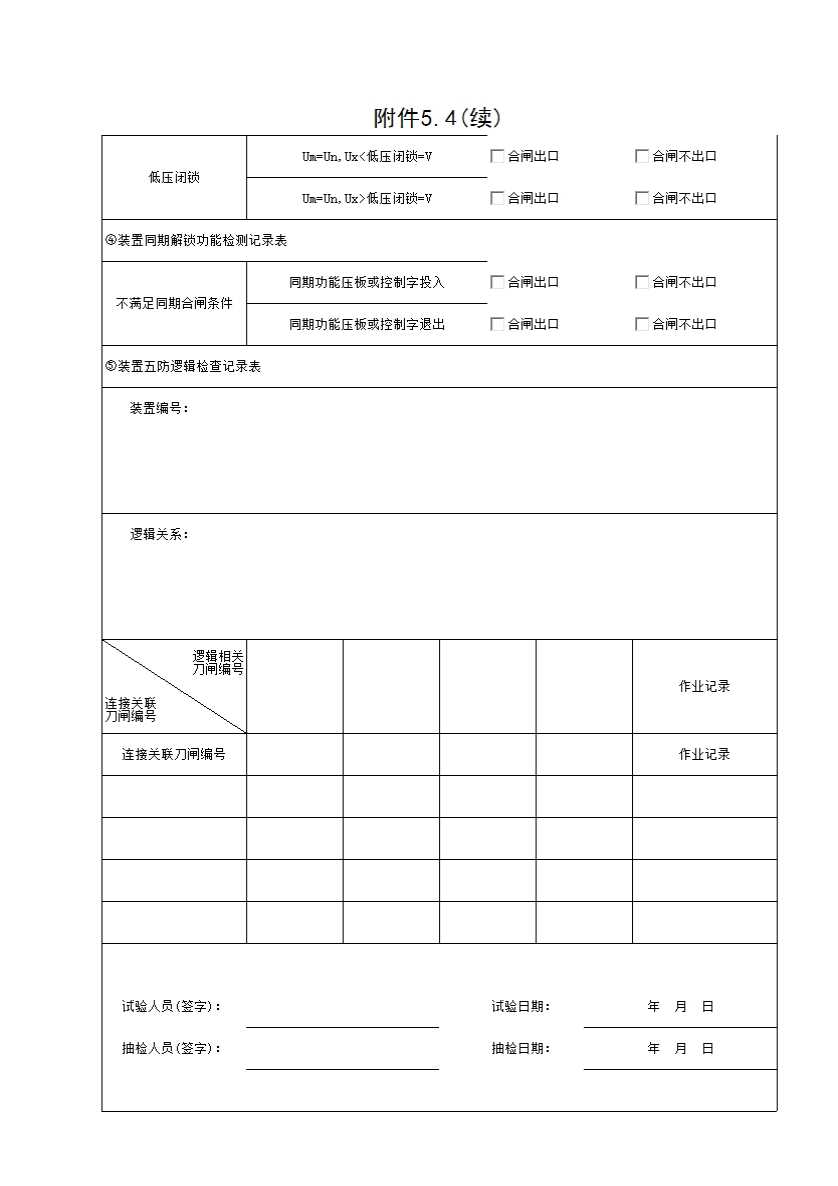 表格名称:附件5.4 同期定值和五防逻辑测试记录表