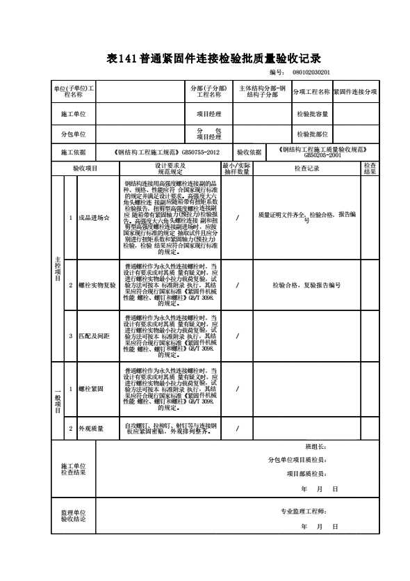 表格名称:140001010201 普通紧固件连接检验批质量验收记录