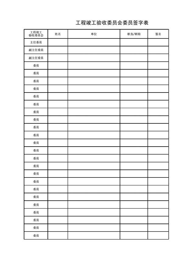 表格名称:表F.0.2 ××工程竣工验收委员会委员签字表