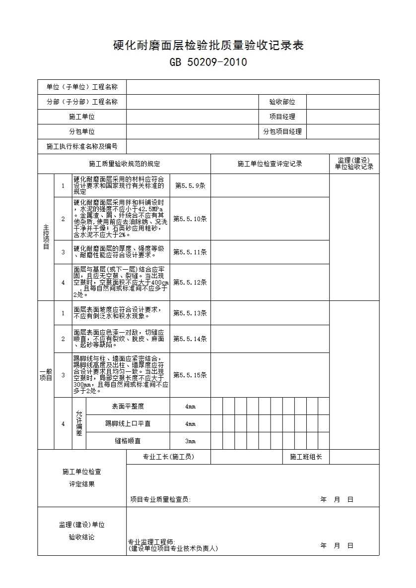 表格名称:硬化耐磨面层检验批质量验收记录表