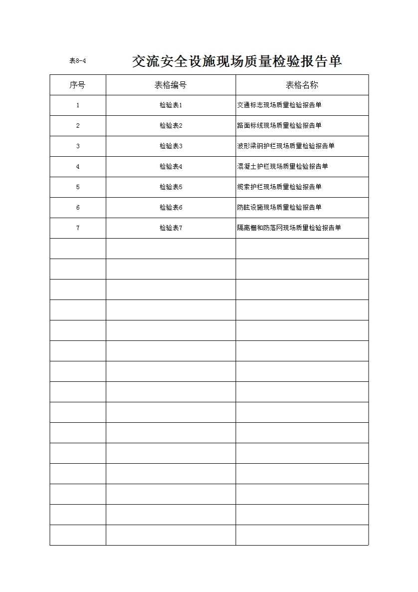 表8-4 交流安全设施现场质量检验报告单
