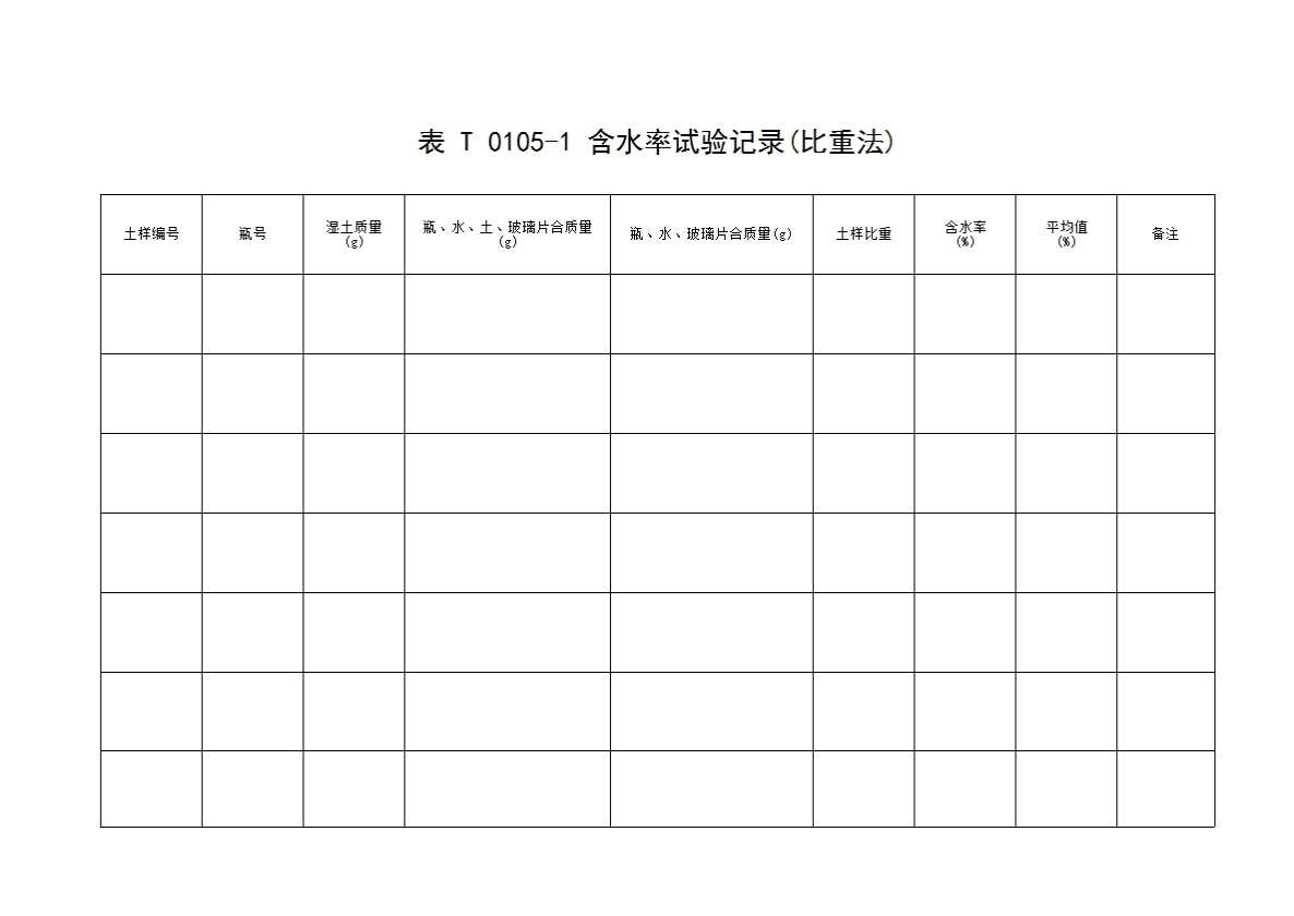表格名称:表T0105-1 含水率试验记录(比重法)