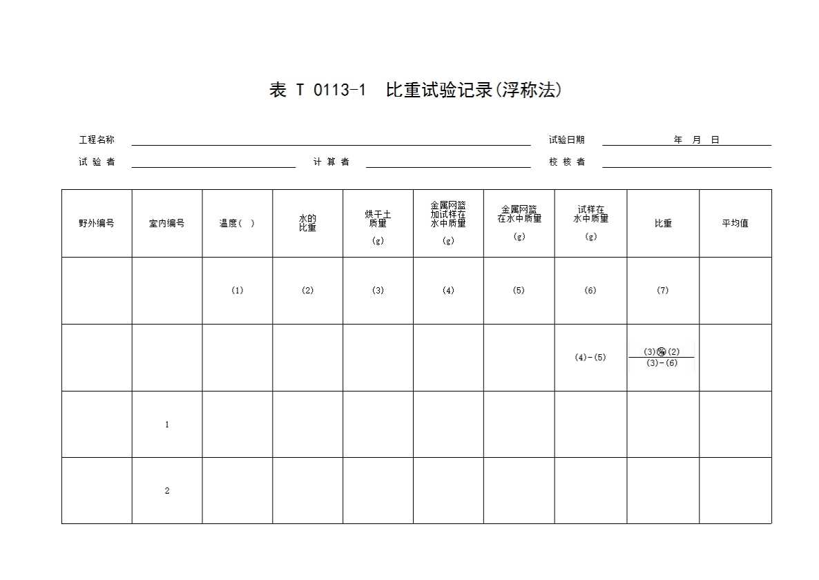 表格名称:表T0113-1 比重试验记录(浮称法)