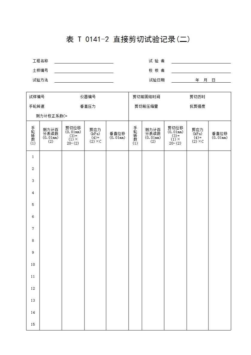 表格名称:表T0141-2 直接剪切试验记录(二)