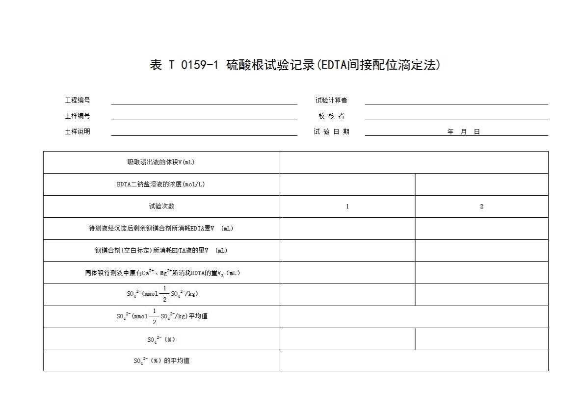 表格名称:表T0159-1 硫酸根试验记录(EDTA间接配位滴定法)
