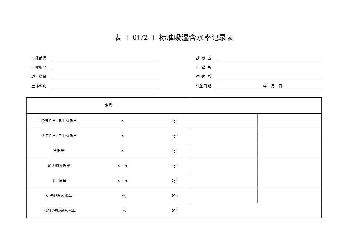 表格名称:表T0172-1 标准吸湿含水率记录表
