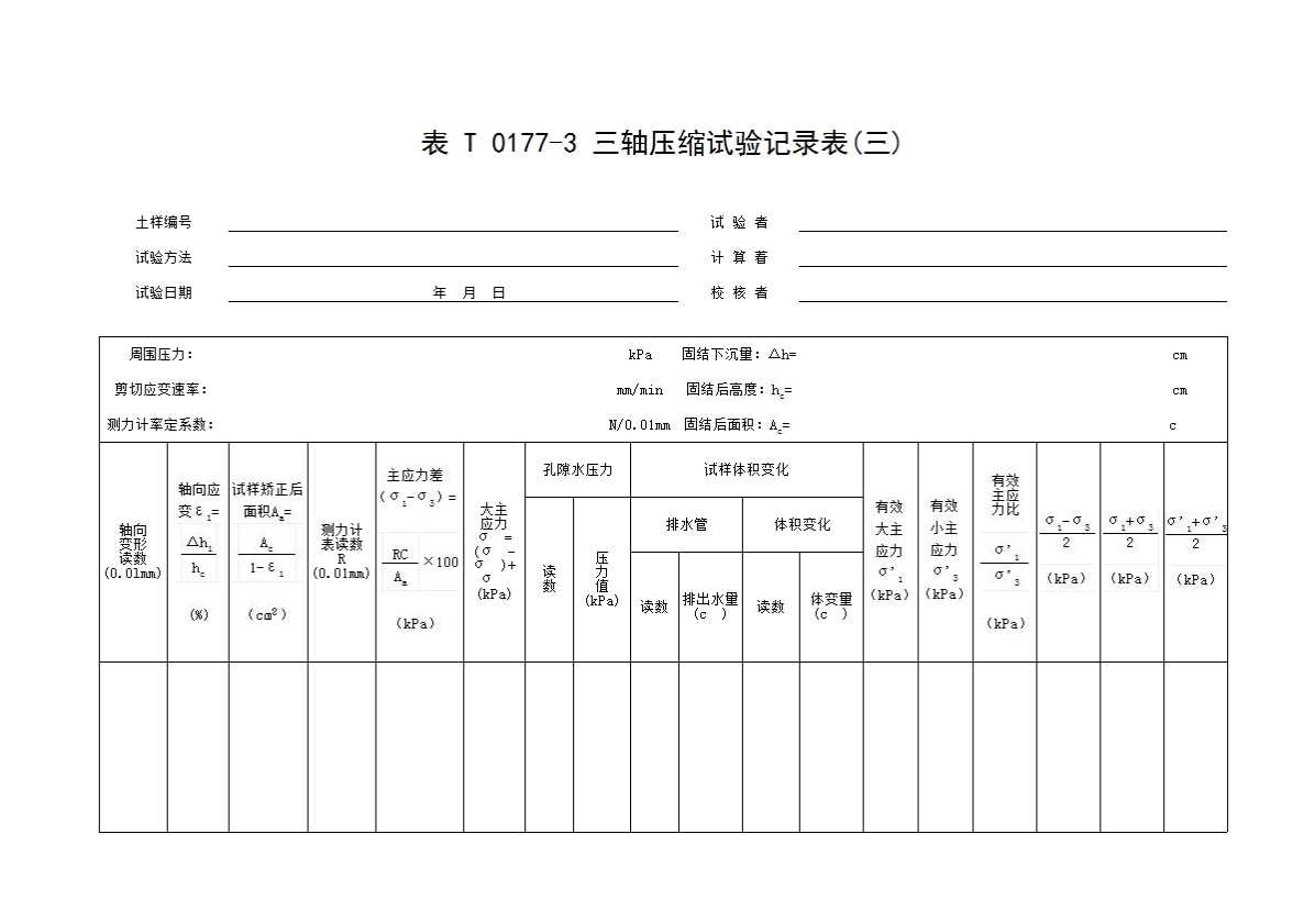 表格名称:表T0177-3 三轴压缩试验记录表(三)