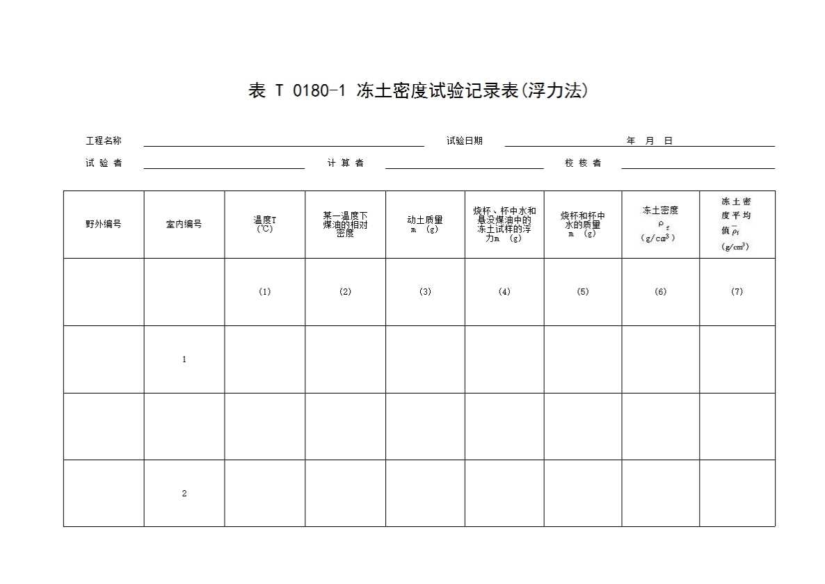 表格名称:表T0180-1 冻土密度试验记录表(浮力法)
