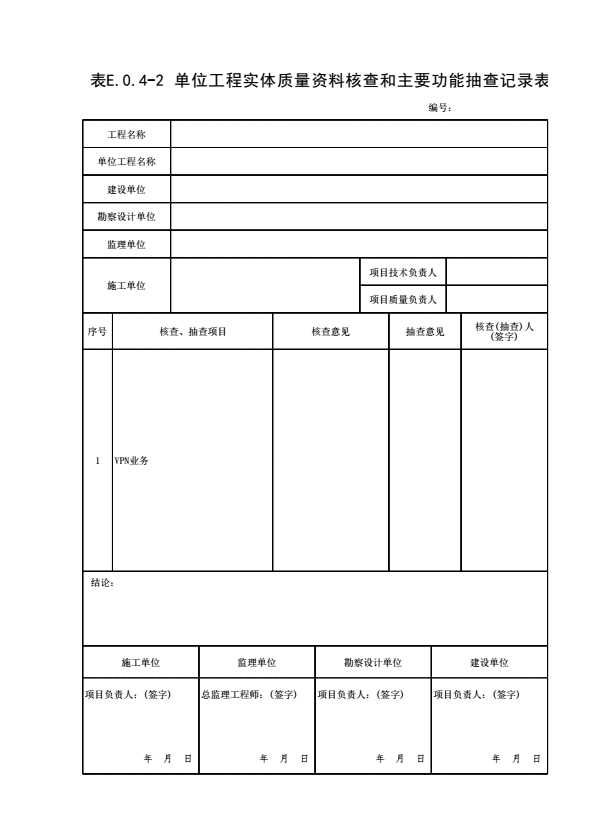 表格名称:4【数据通信网】单位工程实体质量资料核查和主要功能抽查记录表