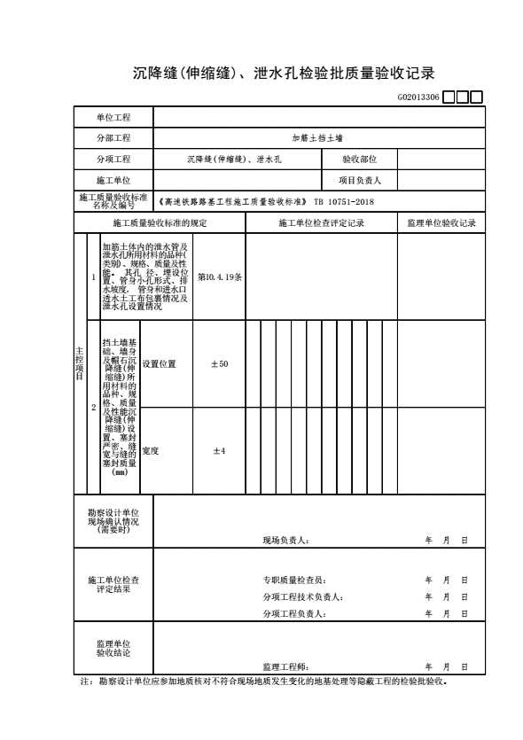 G02013306 沉降缝(伸缩缝)、泄水孔检验批质量验收记录