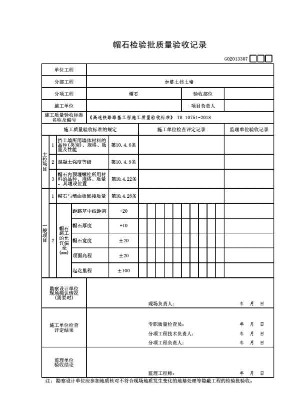 G02013307 帽石检验批质量验收记录