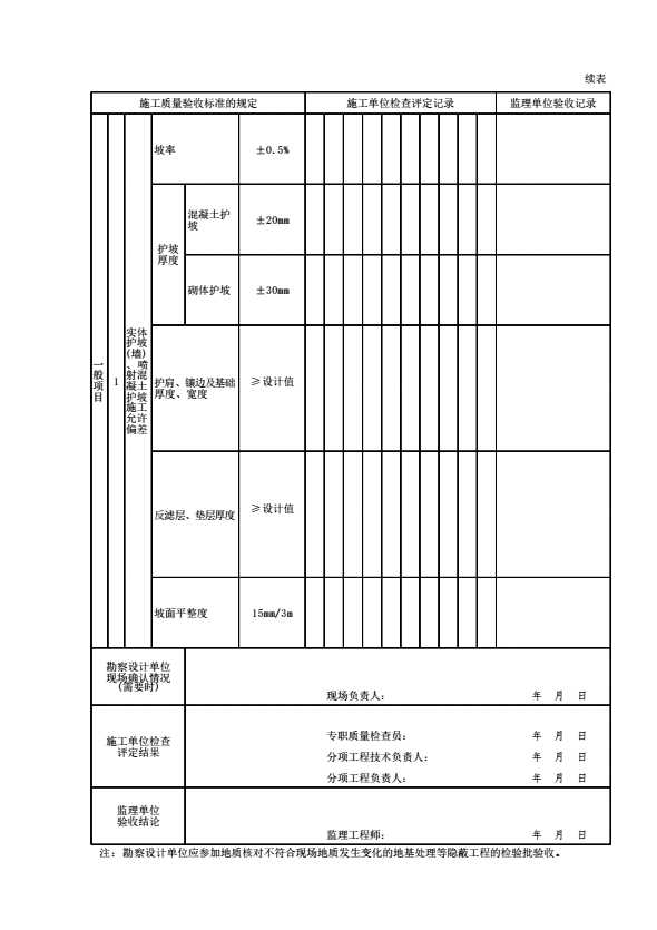 表格名称:G02014202 预制块(件)护坡(墙)检验批质量验收记录