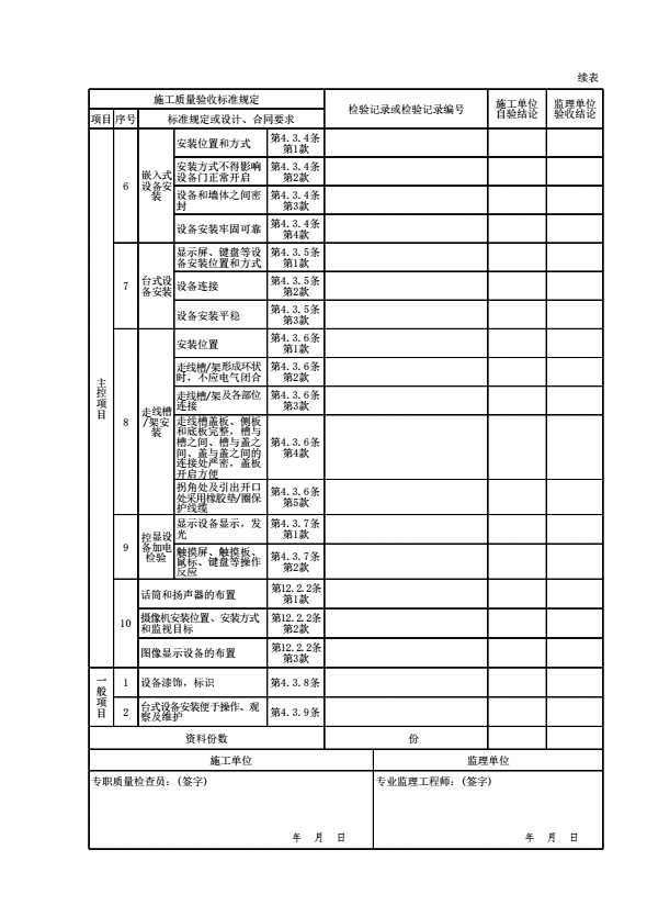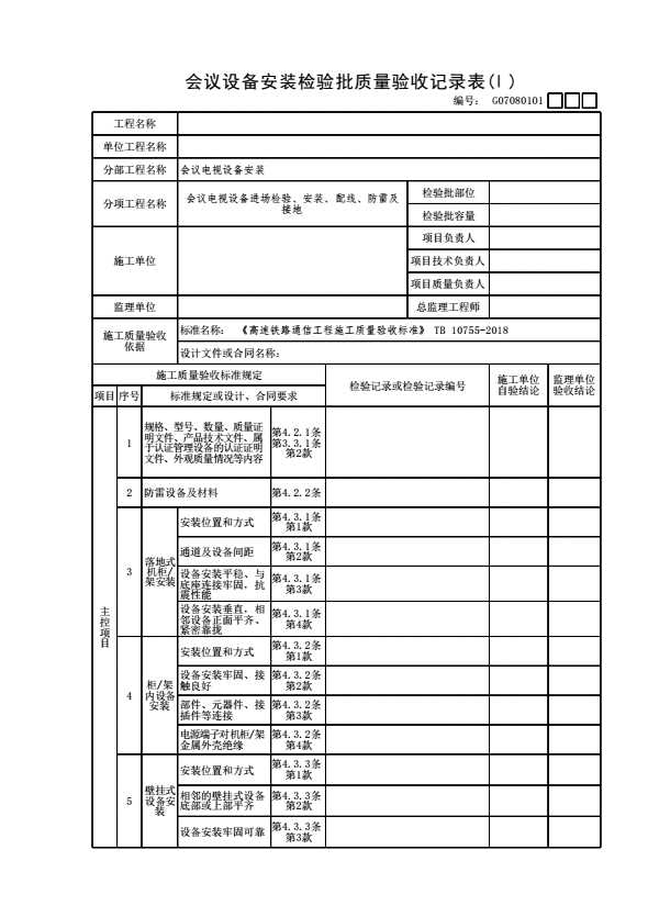 表格名称:G07080101 会议设备安装检验批质量验收记录表(Ⅰ)