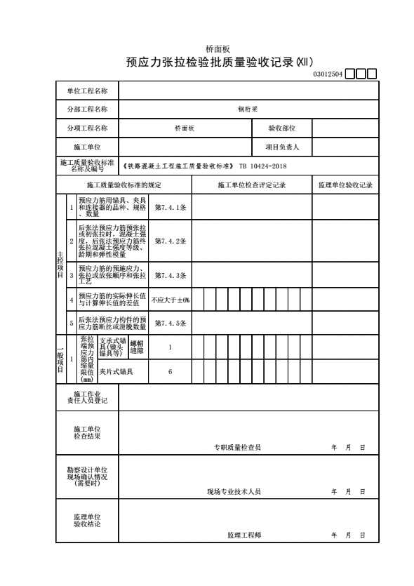 表格名称:03012504 预应力张拉检验批质量验收记录(Ⅻ)