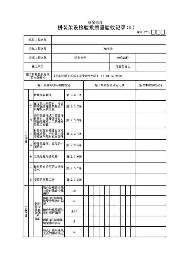 表格名称:03013201 拼装架设检验批质量验收记录(Ⅱ)
