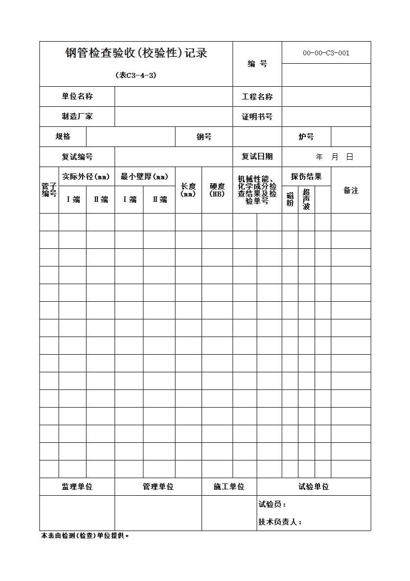 表格名称:C3-4-3 钢管检查验收(校验性)记录