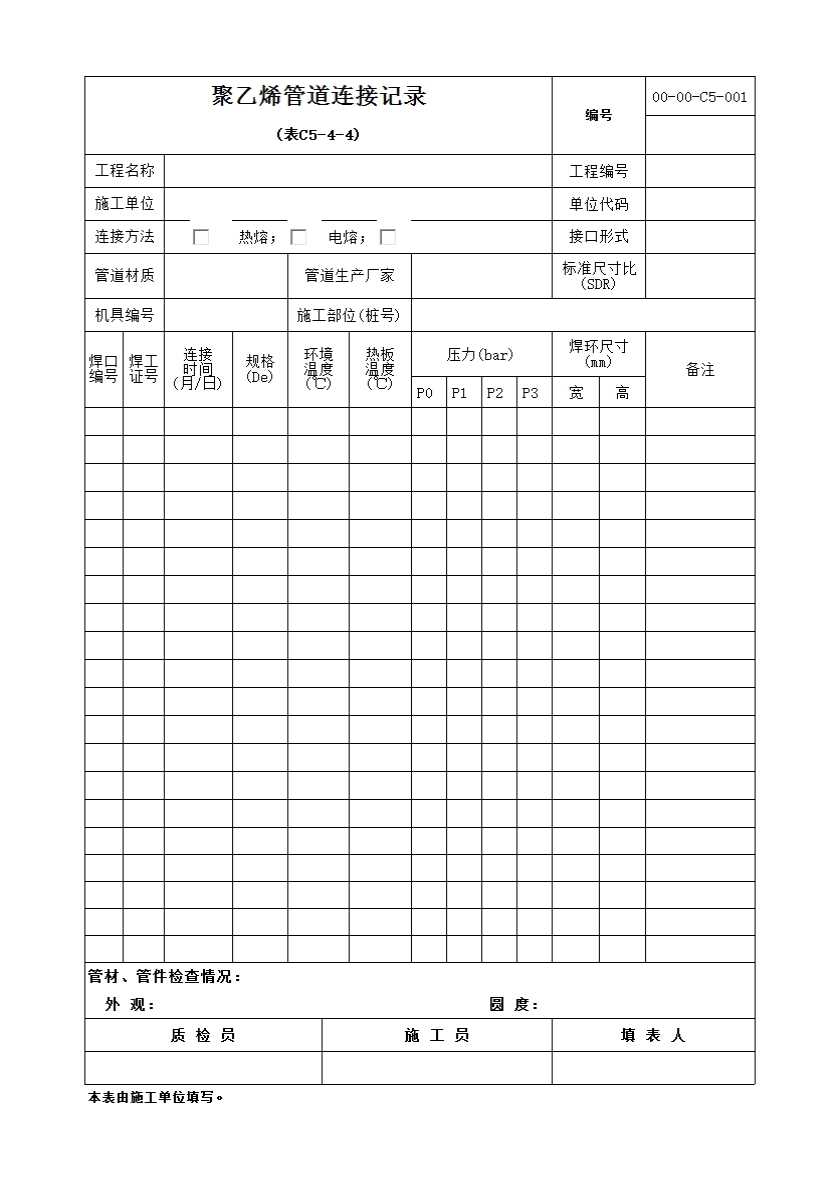 表格名称:C5-4-4 聚乙烯管道连接记录