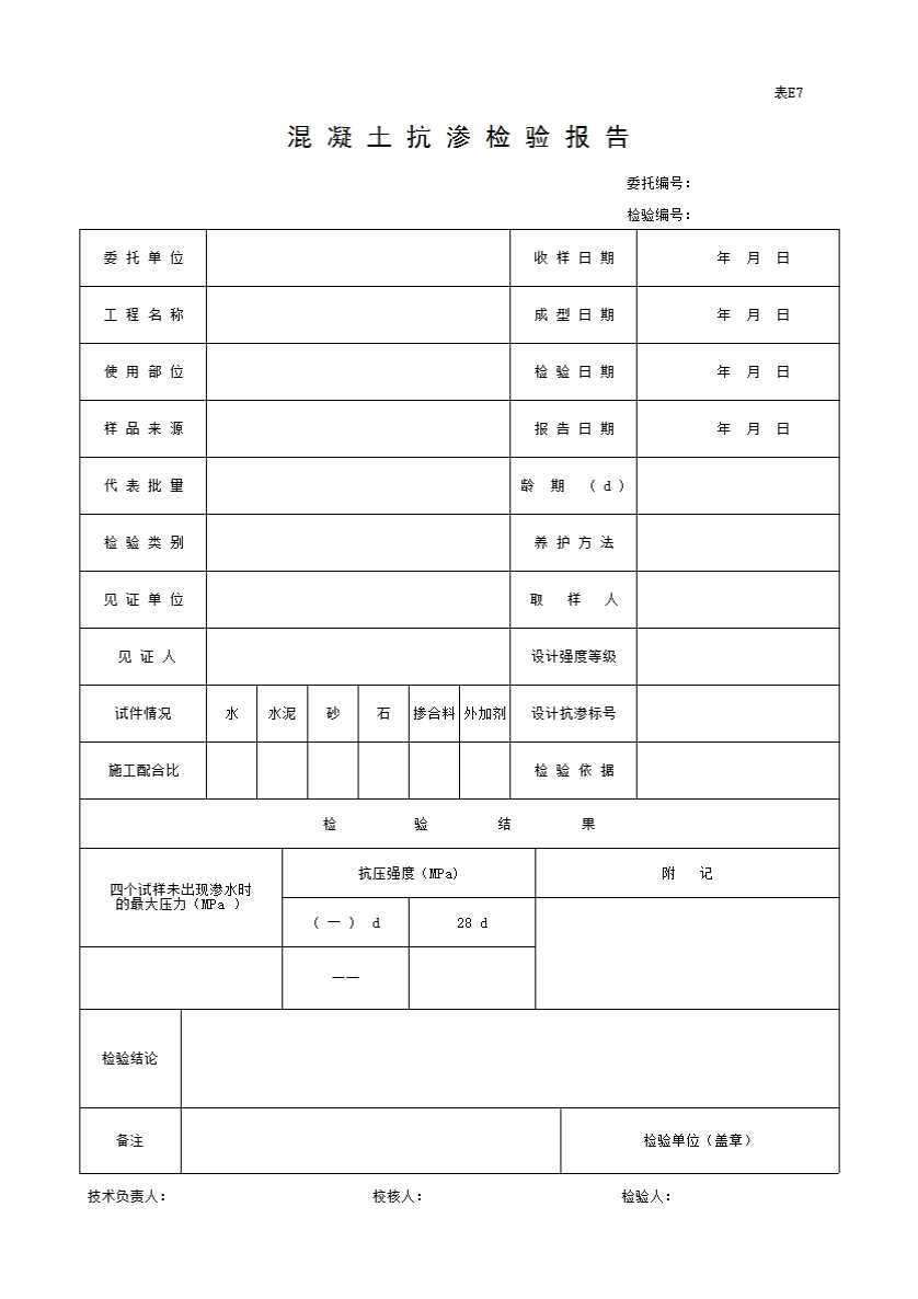 表格名称:表E7 混 凝 土 抗 渗 检 验 报 告