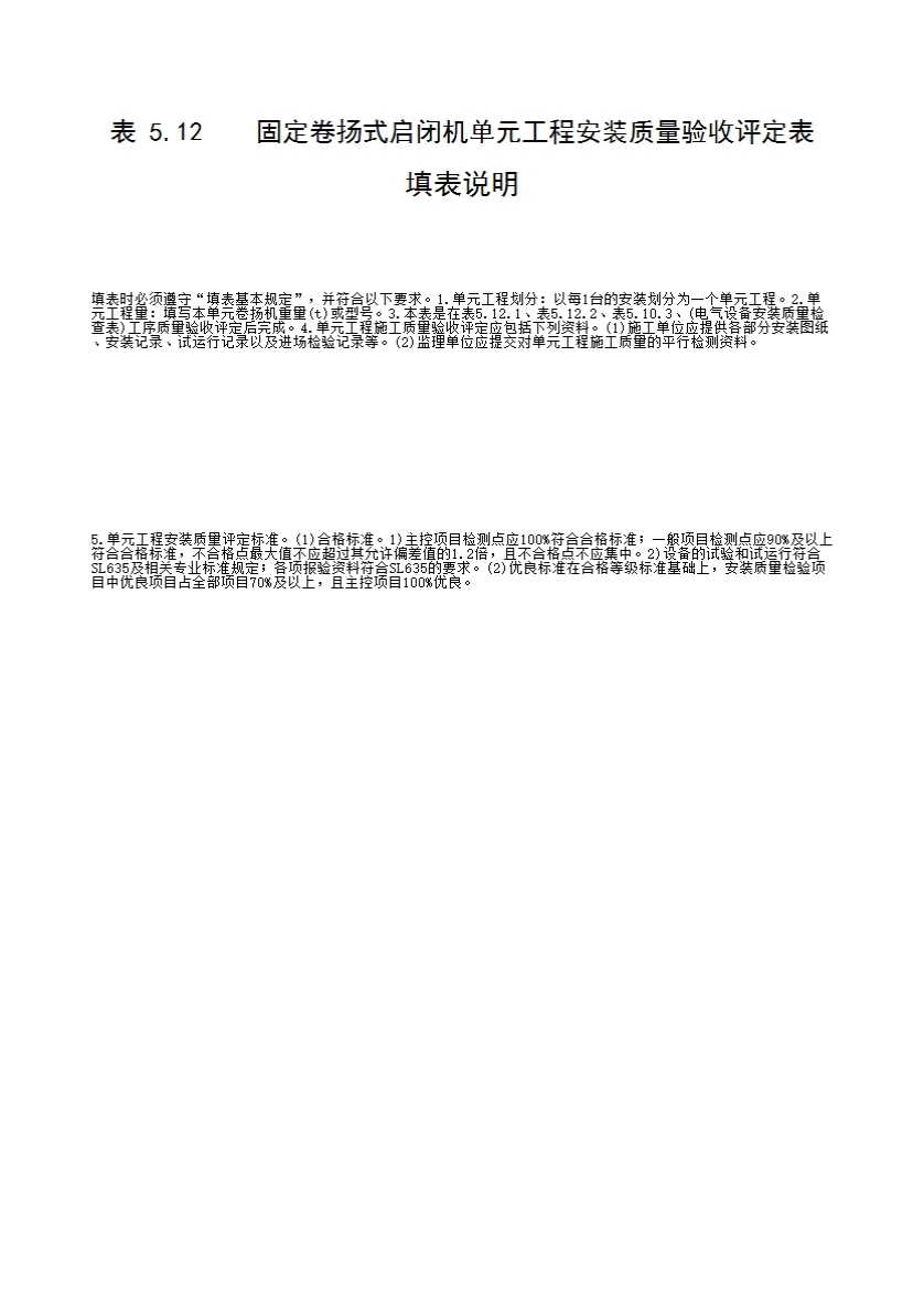 表格名称:表5.12 固定卷扬式启闭机单元工程安装质量验收评定表