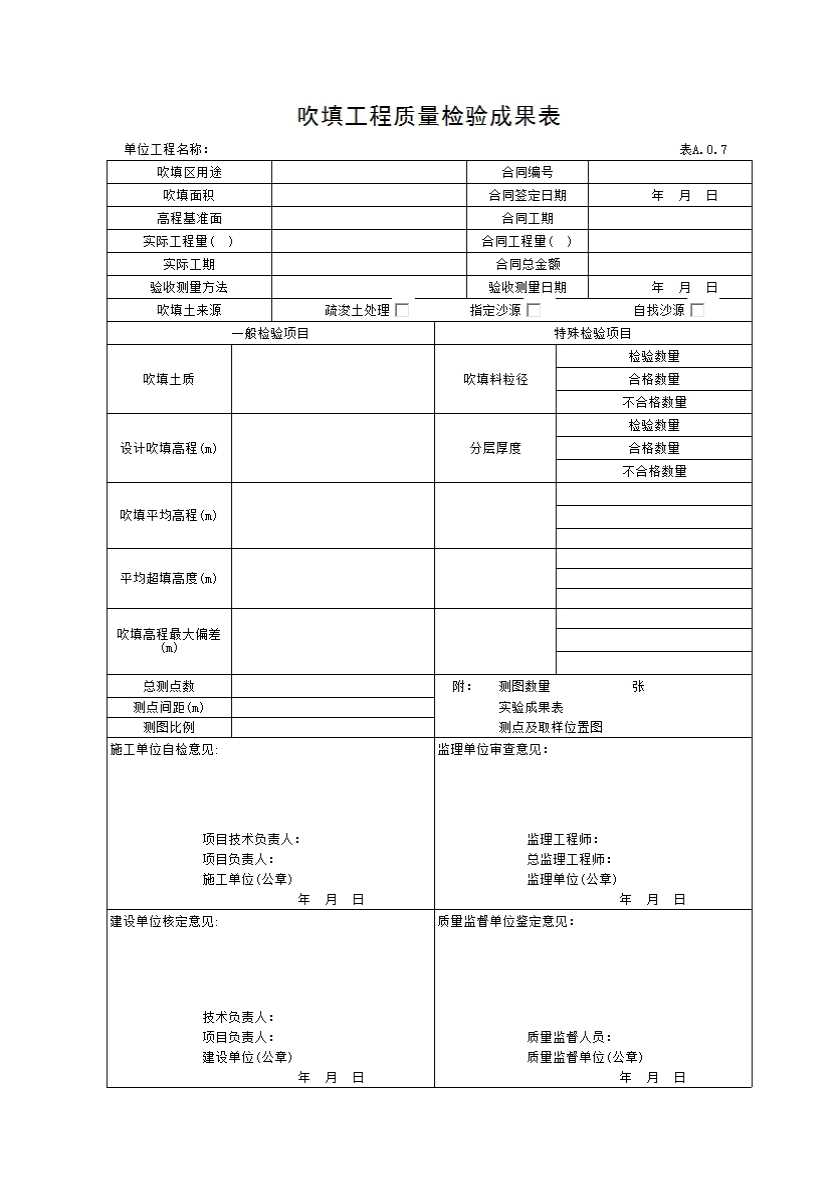 表格名称:表A.0.7 吹填工程质量检验成果表