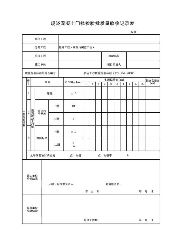 表格名称:现浇混凝土门槛检验批质量验收记录表