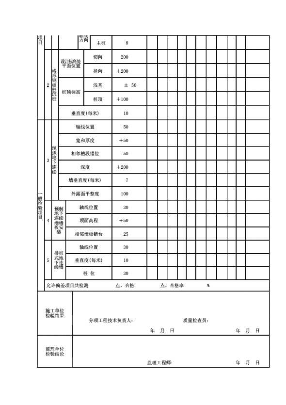 板桩与地连墙闸墙检验批质量检验记录表
