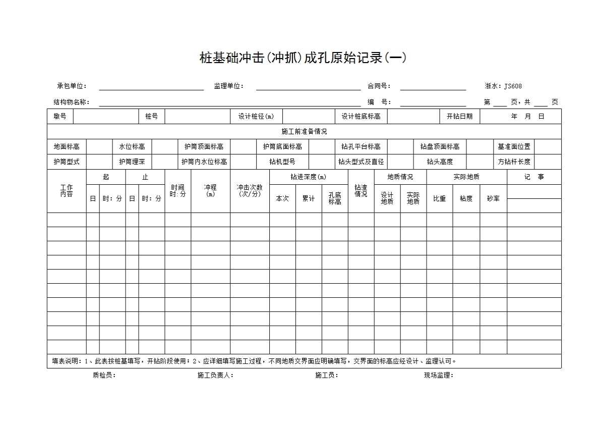 表格名称:008 桩基础冲击(冲抓)成孔原始记录(一)